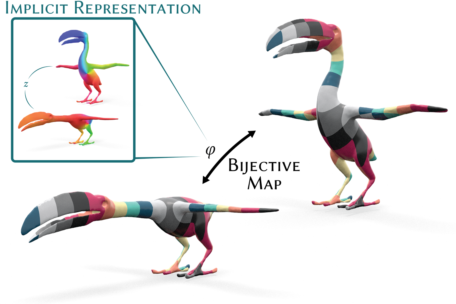 Implicit Minimal Surfaces for Bijective Correspondences